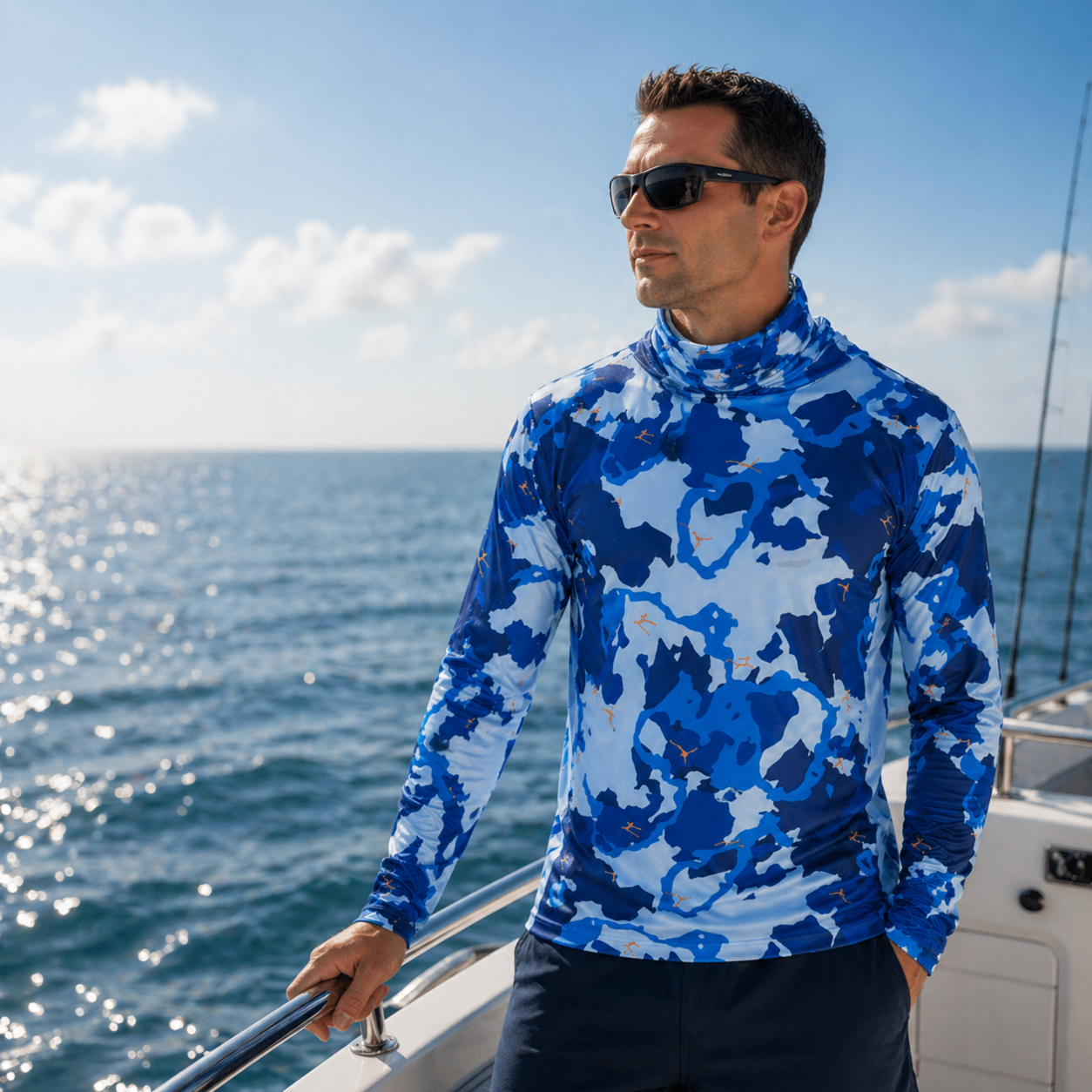 Our hoodie is made from lightweight UPF 50+ polyester fabric that is breathable, moisture-wicking and quick-drying — perfect for long days on the water.